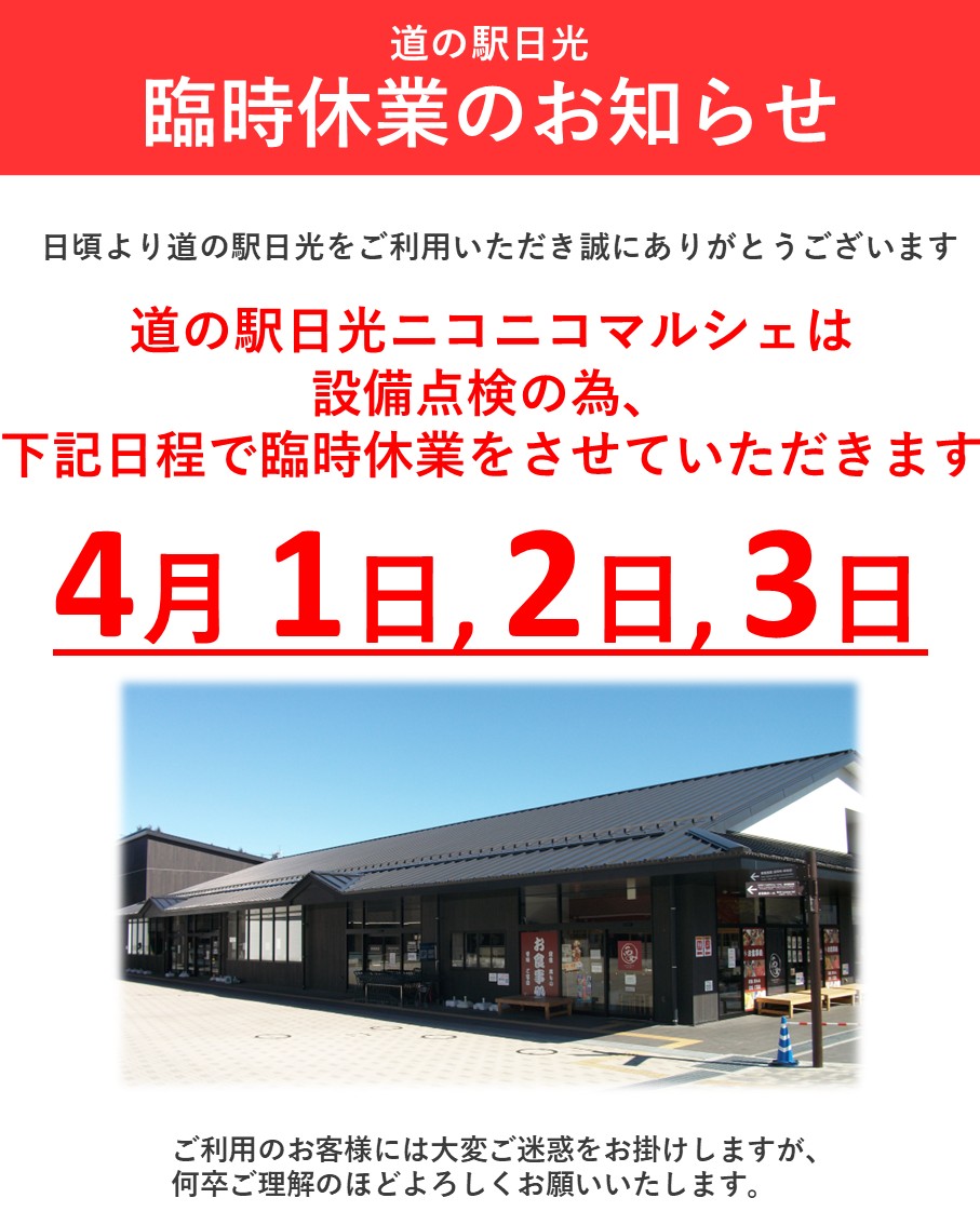日頃より道の駅日光をご利用いただき誠にありがとうございます。