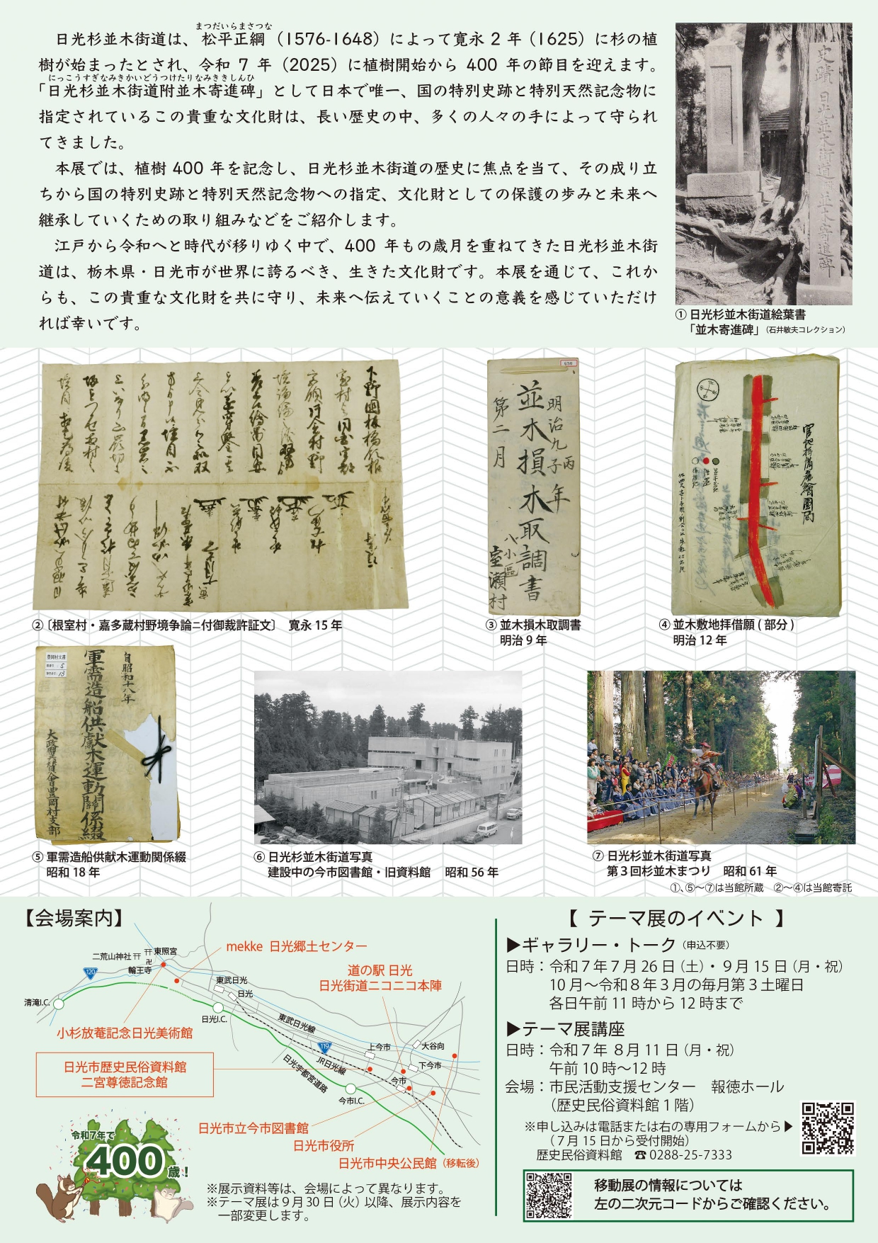 日光杉並木街道植樹400年記念移動展10月3日~12月1日