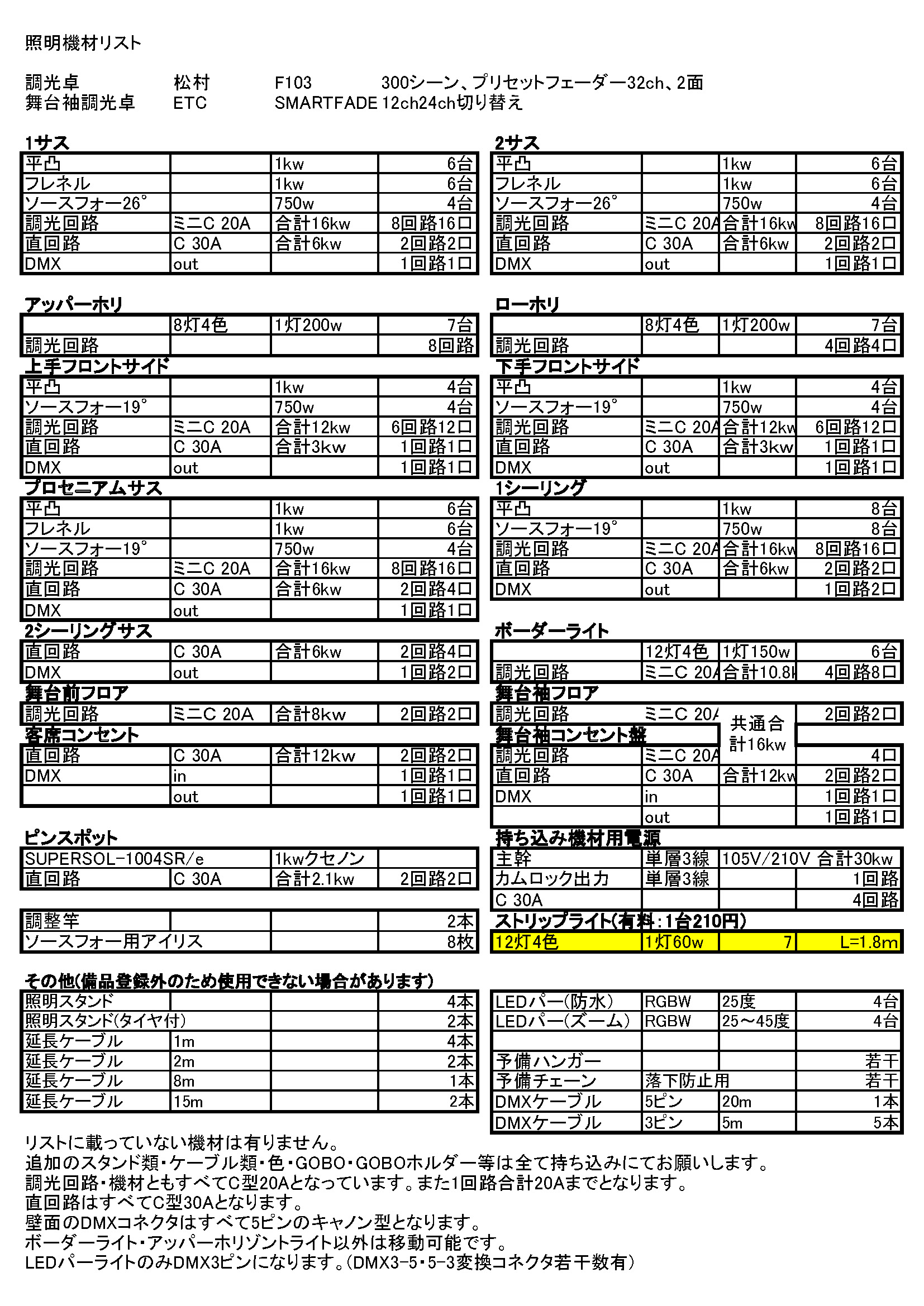 客席搬入口は屋根がありません雨天時は雨が降り込まないようご配慮お願いします。
